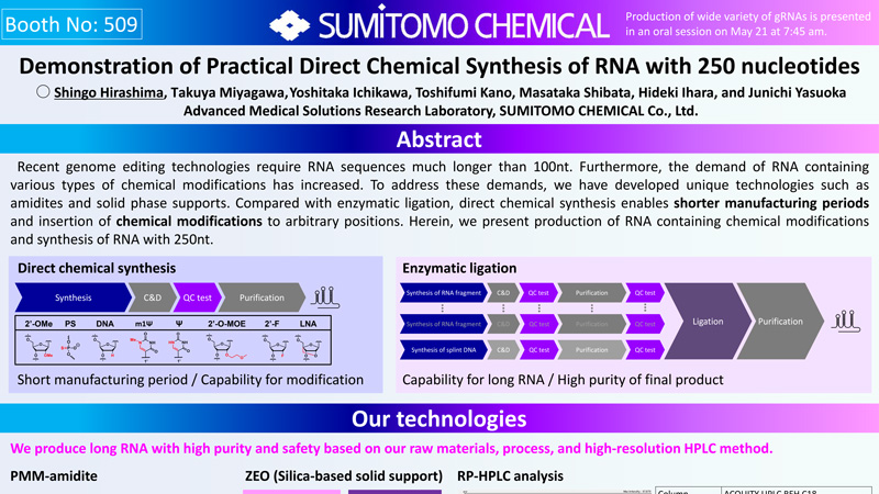 highlights thethe excellence of Sumitomo's process for producing high-quality 200mer guide RNAs (gRNA),