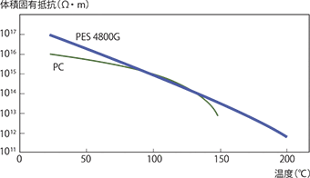 スミカエクセルPESの体積固有抵抗は200℃においても1011Ω・mと高い値を有しています。