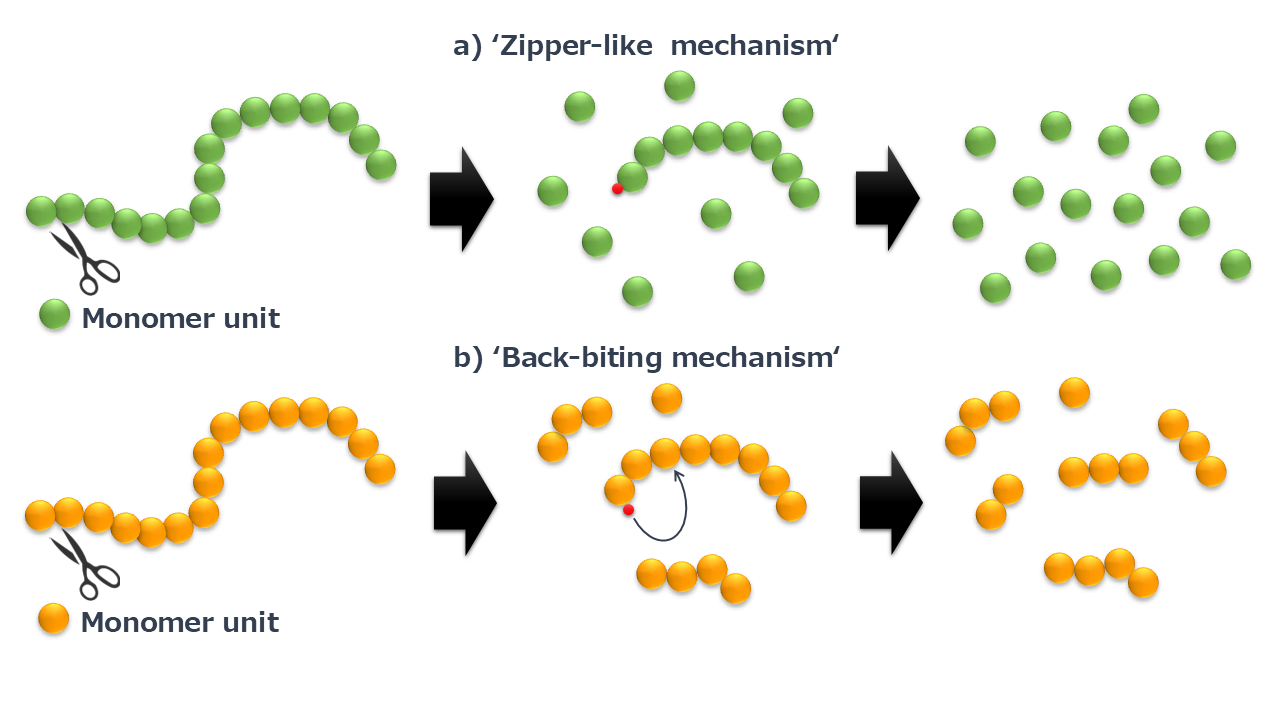 Because PMMA molecular chains have a "zipper-like mechanism," they can efficiently return to monomers simply by heating. In contrast, other resins undergo a "back-biting mechanism," which leads to side reactions and the formation of byproducts such as oligomers. Due to this structural difference, PMMA is significantly more suitable for recycling using thermal depolymerization compared to other resins.